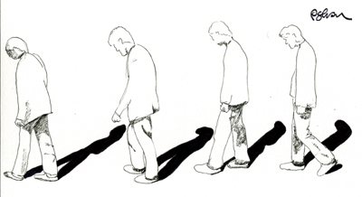 這個景象忽然讓我想起自己也曾經站在身邊比高度的那張照片,那是高中的時候,我到父親肩膀的高度。腦海裡又浮現另一張泛黃的照片,那是更小的時候,約三、四歲,全家在公園玩「推倒」的遊戲,父親站如座山,而我也是只到父親膝蓋的高度。